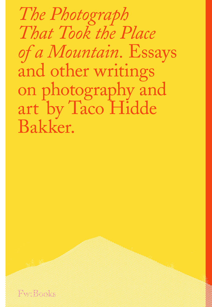 In July 2018, Fw:Books published The Photograph That Took the Place of a Mountain, a volume containing 20 of Bakker’s miscellaneous writings, which were originally published in art and photography magazines and on two blogs between 2007 and 2016. The author revised and expanded most of the existing texts and wrote four new ones especially for this book, whose topics range from the tension between artist and model to the landscapes of the American West, the surfaces of a second-hand New York City, and the predicament of transcultural photography.